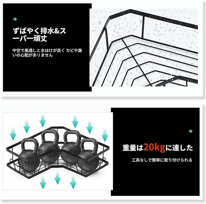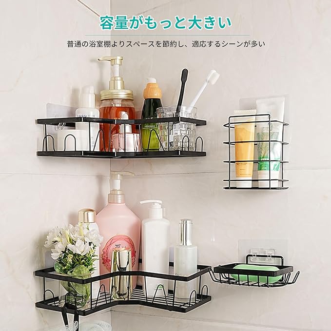 【高品質の材料】浴室棚は高強度の鋼材でできており、表面に粉末塗装処理が施されており、錆びにくく、耐食性に優れている。 蒸気、酸化破裂を防ぎ、油汚れのある台所で使用できます。 元の光沢を保つこともできます。 浴室の棚は精密溶接を採用して、強い重量能力があり、丈夫で耐久性がある。