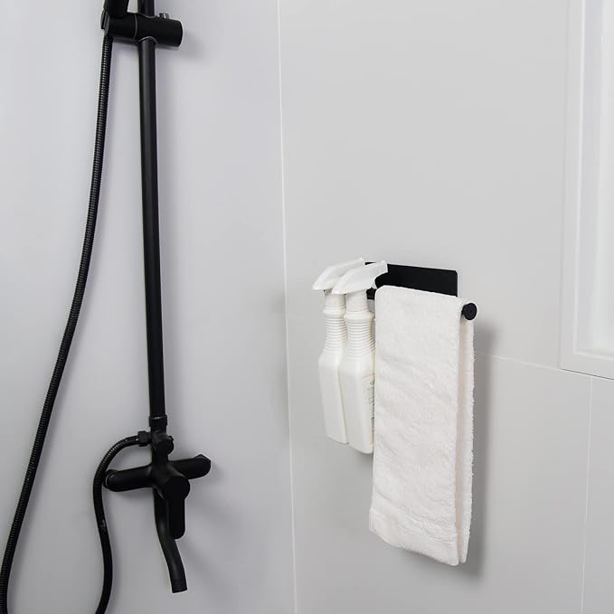 バスルーム ラック 浴室用ラック 強力固定 お風呂の壁に ステンレス シャワーラック 水切り 風呂場洗面所収納壁掛け棚 収納ラック (30cmタオル掛け マグネット, ブラック)