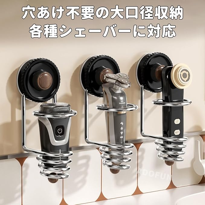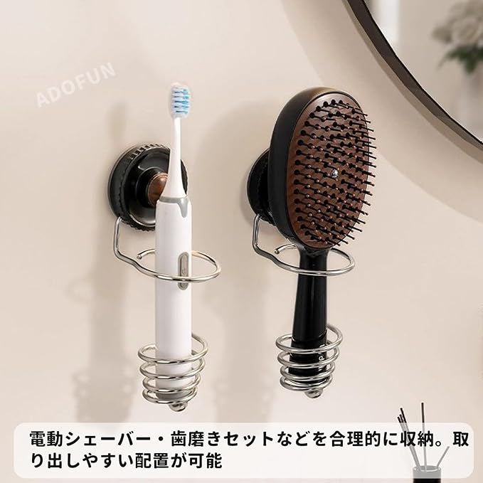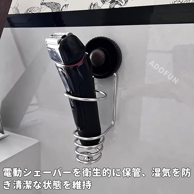 ADOFUN シェーバーホルダー 電動歯ブラシホルダー 壁掛け式 ステンレス鋼 多機能収納ラック 吸盤付き 電動歯ブラシ 髭剃り 歯磨き ドライヤー 小物収納 防水 浴室 洗面所 | KAZESHOP