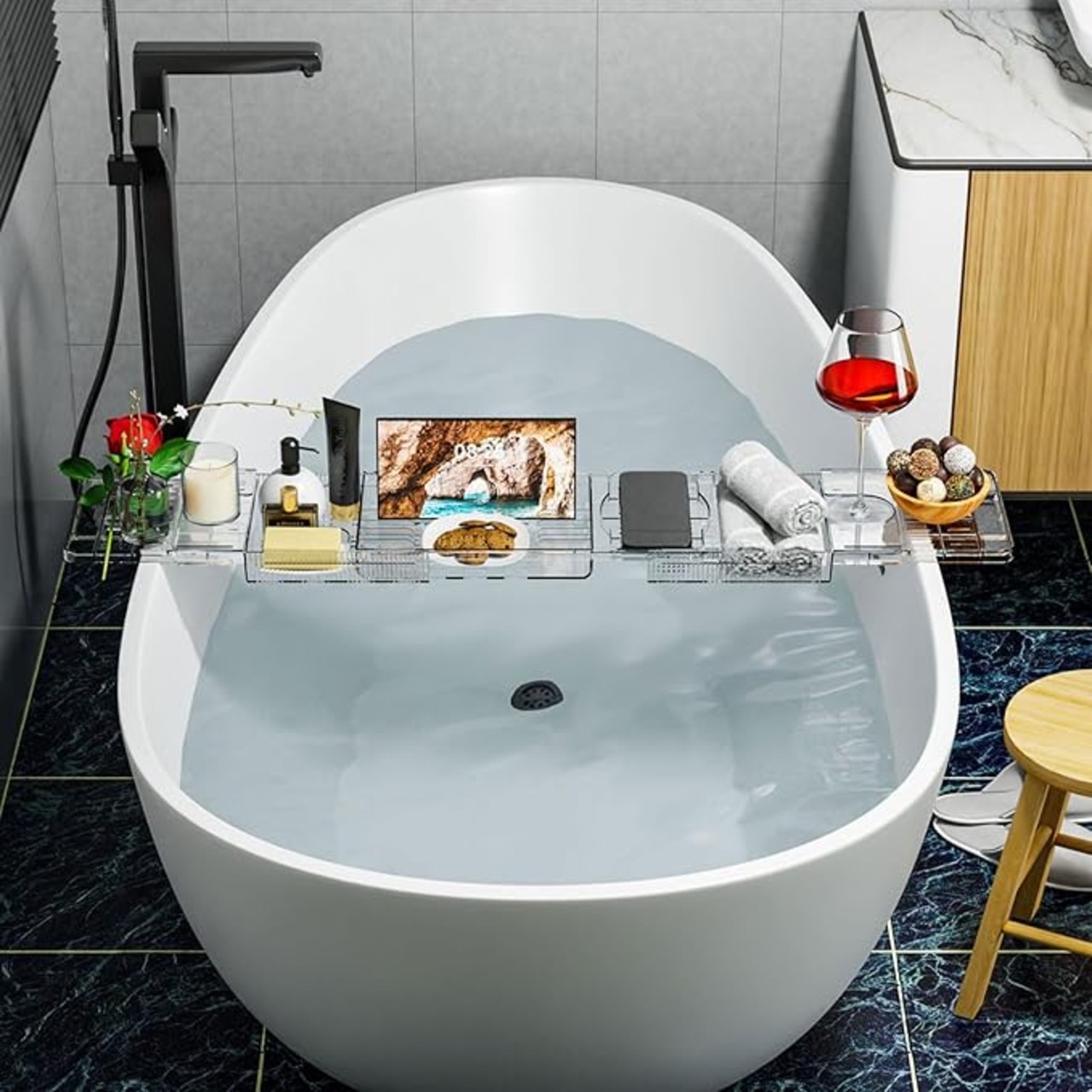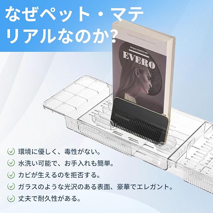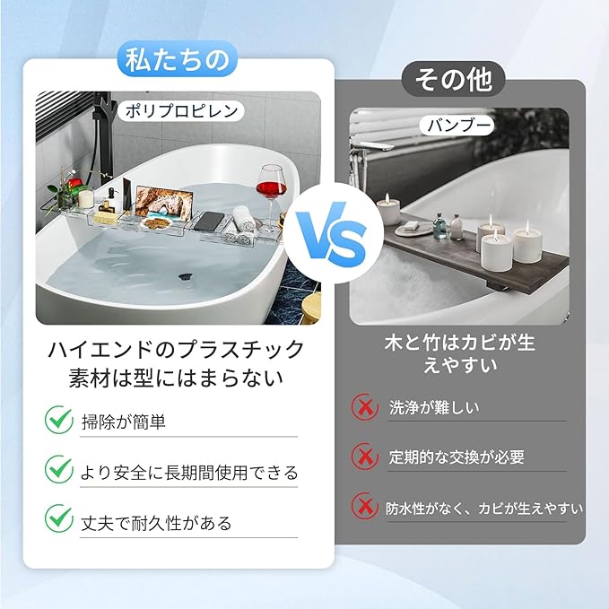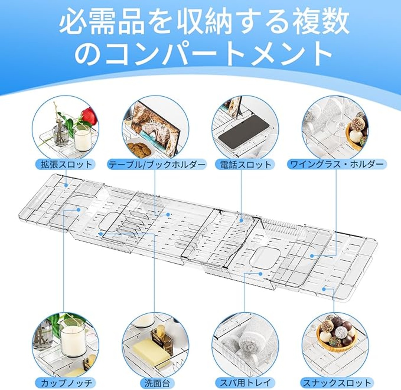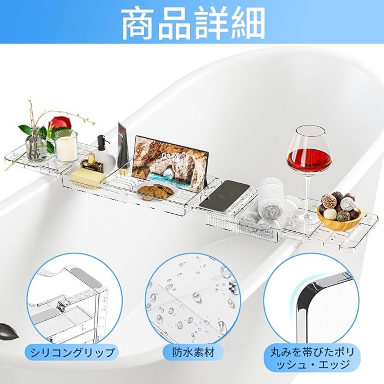 伸縮式 バスタブトレー お風呂テーブル (56.5-98cm調整可能) シリコン滑り止め付き|カビ防止・錆びにくい設計|浴室収納 浴槽ラック お風呂グッズ バスタブスタンド|のんびりお風呂時間用 日本仕様 | KAZESHOP