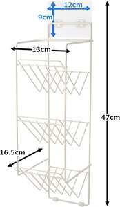 サイズ:(約)ラック本体/幅13 奥行16.5 高さ47cm 粘着シート/幅12 奥行1 高さ9cm