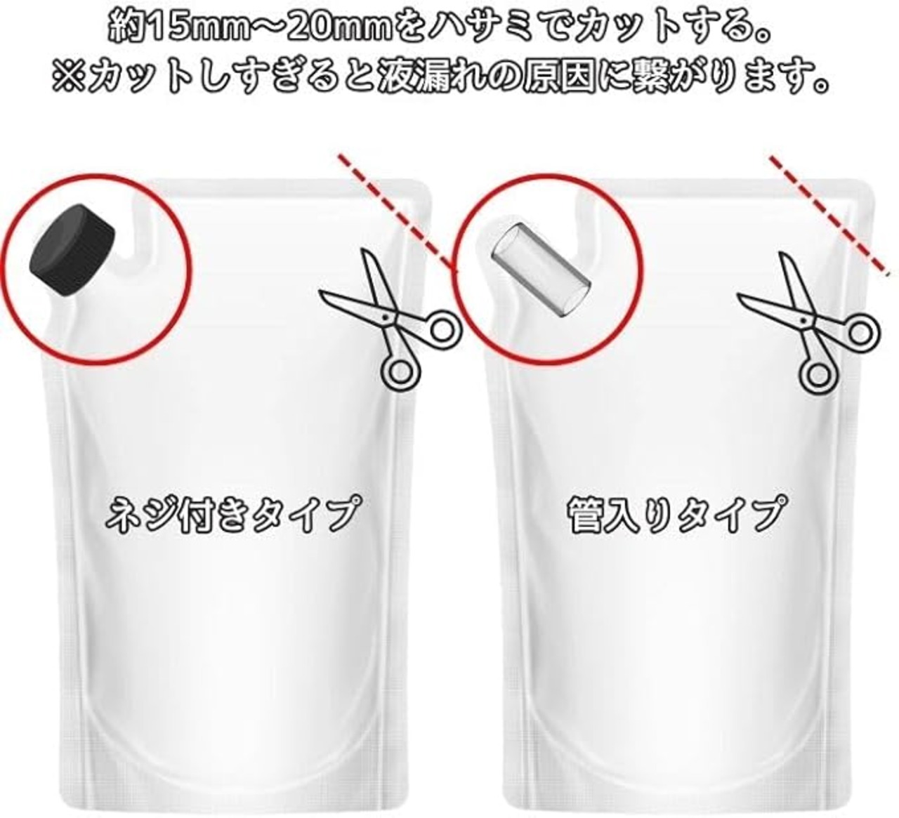 特徴:ブラック(高粘度の洗剤用)ホワイト(通常粘度の洗剤用)