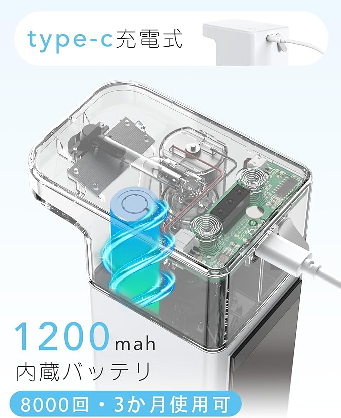 【充電式&IPX7防水】USB充電なので電池交換がいらないのと、一度の充電で最大3ヶ月間使い続けられるため、頻繁な充電も必要なくお好きな場所へ持ち運んで使えます。IPX7防水なのでお手入れに便利、キッチンや浴室など水に濡れやすい場所でも使えます。