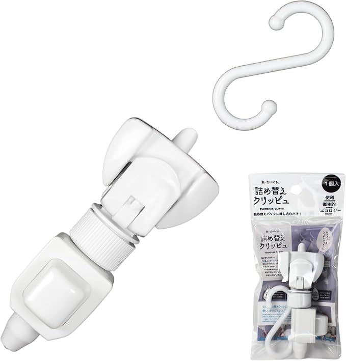 詰め替えクリッピュ 1個セット ホワイト シャンプー リンス ボディソープ 化粧水 クレンジングオイル 詰替え 対応 ぶら下げ 吊り下げ 浮かせる ディスペンサー お風呂 便利グッズ | KAZESHOP