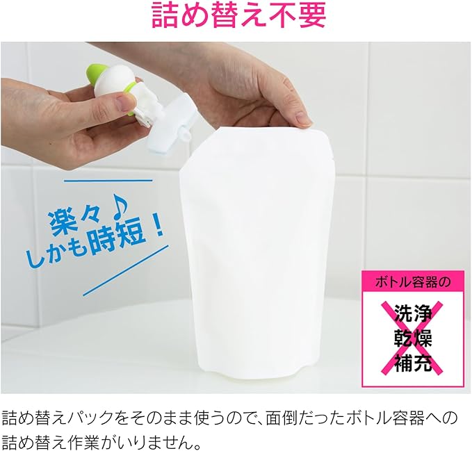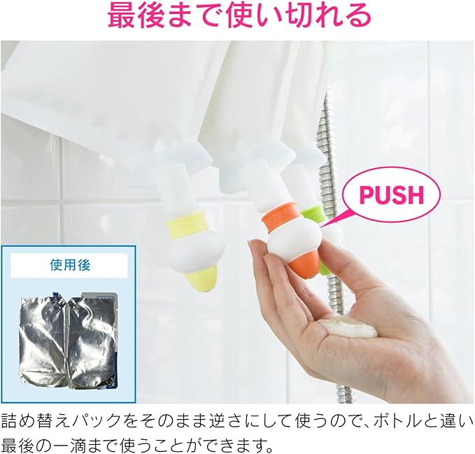 ・シャンプーなどの詰め替えパックの先に先端ノズルをつけてそのまま使用できる