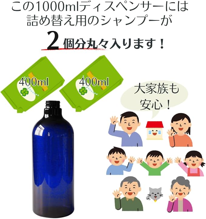 詰め替え回数を減らせる大容量1000mlタイプ。 区別の付きやすいブルー、クリア、レッド、ブラウン、グリーンの5色展開。