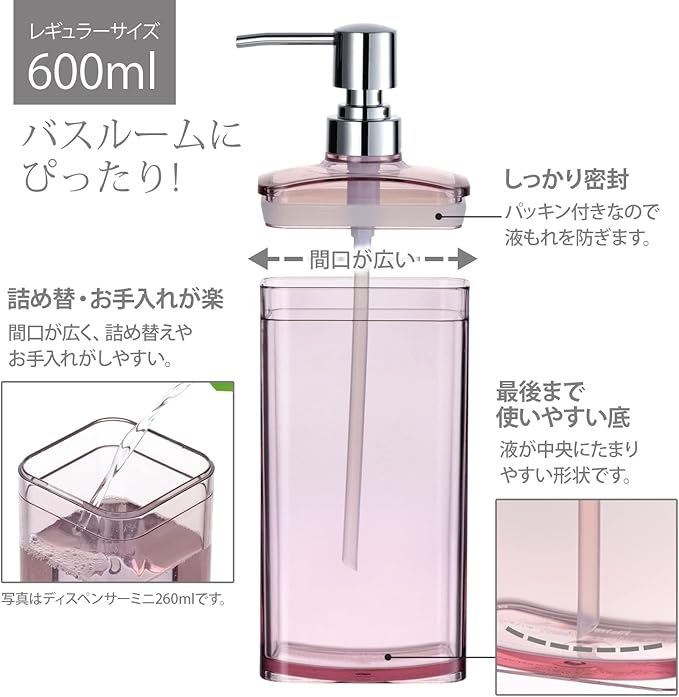 細いフォルム、スリムな角型で、お風呂の棚にスッキリ収納。