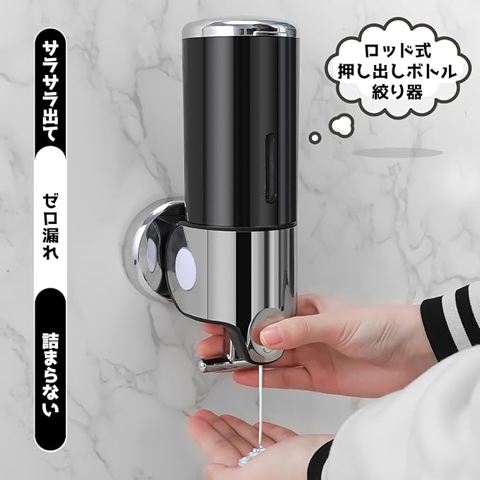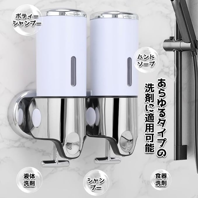 3連式大容量デザインで使い分け自由、衛生的で便利な詰め替えシステム。500ml 3つの独立チャンバーを備えた多機能ディスペンサー。シャンプー、コンディショナー、ボディソープなど、用途に合わせて液体を使い分け可能。水回りの整理整頓に最適で、詰め替え頻度を大幅に削減。衛生的なワンタッチ操作で、毎日のバスタイムがより快適に。