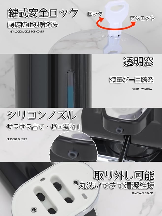 透明ウィンドウで残量が一目瞭然、切れる前に余裕を持って詰め替え。各ボトルに透明ウィンドウを配置。中身の色や残量が瞬時に確認可能で、急な切れ味を防止。忙しい朝でも、残量を気にせずスムーズに使用できます。詰め替え時期を見逃さない、実用的なデザインです。