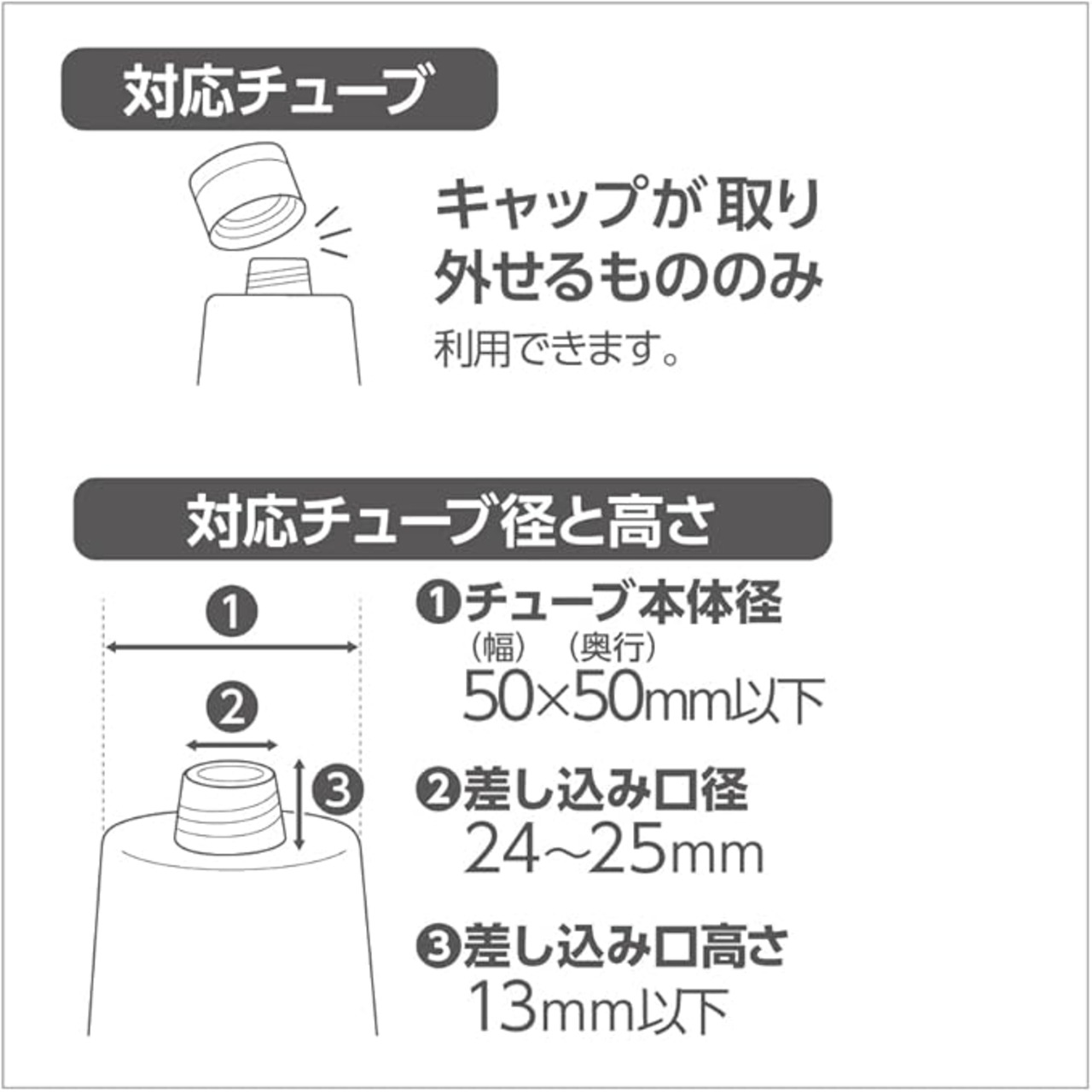 対応チューブ本体径/幅50mm 奥行50mm以下