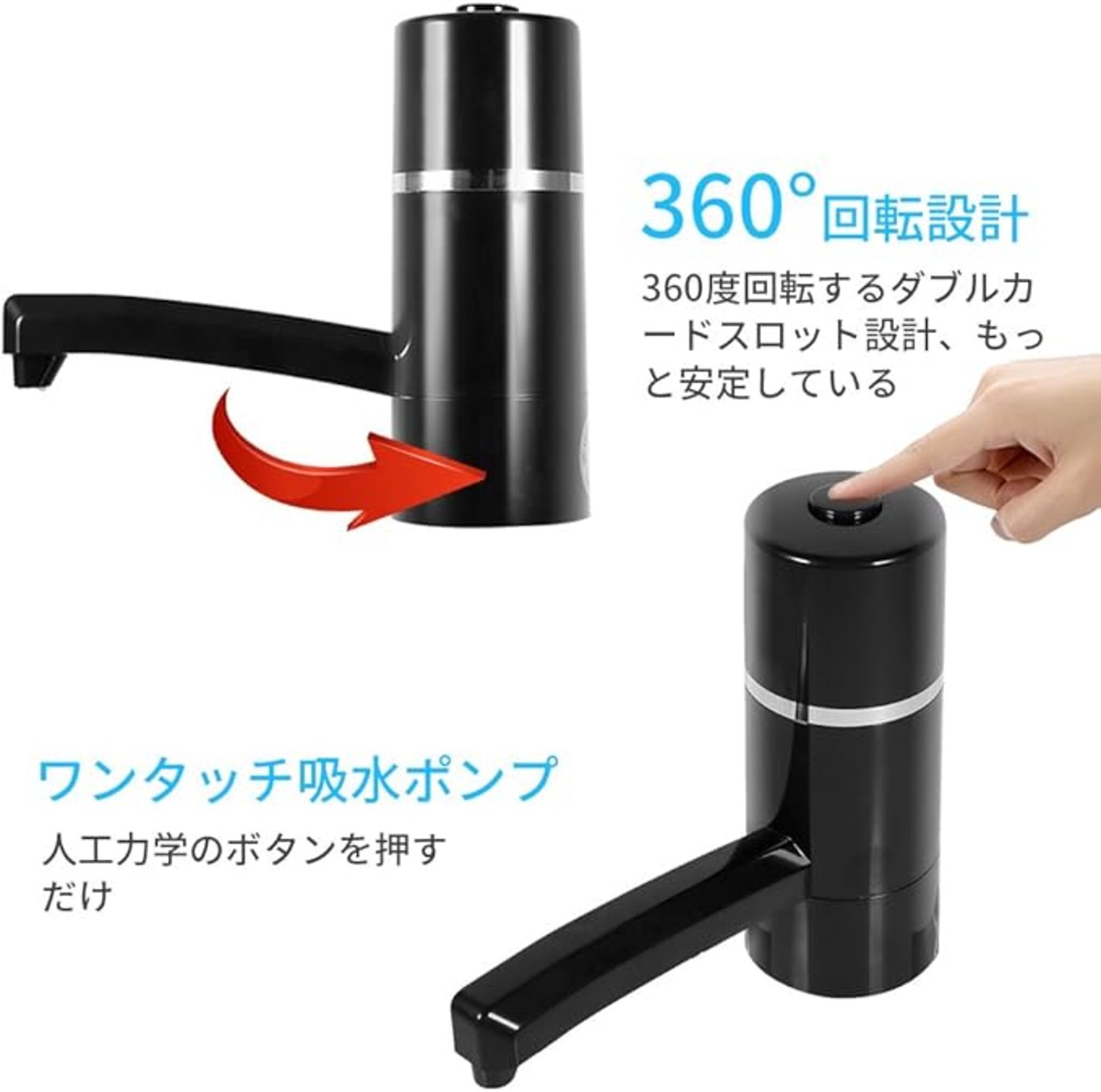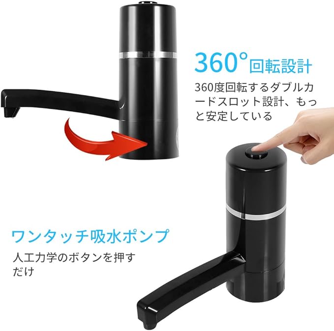 【USB電源供給、使用簡単、携帯便利】この電動ウォーターポンプはUSB電源供給、安全で便利になっています。内蔵充電式電池、完全に充電完了後、30日使用できます。移動電源充電も可能。360度回転が可能。手間なくボタン一つで自動で注水できます。ソフトな手触りのボタンをクリックしてください。子供、高齢者に、大人のポンプを使用して簡単します。