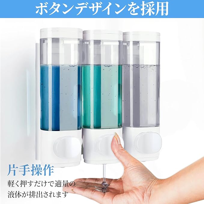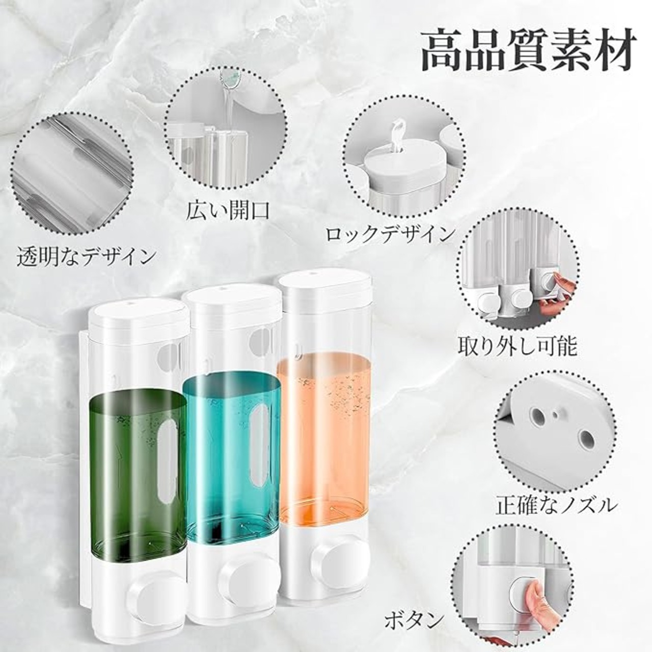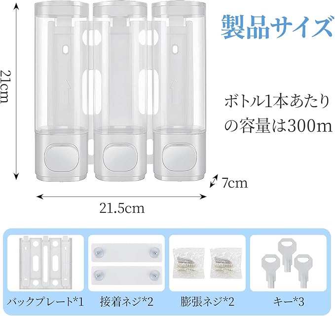 ✅【大容量300ml】この3列ソープディスペンサーのサイズは21.5 x 21 x 7cmで、各ボトルの容量は300mlなので、頻繁な補充の必要がありません。液体をさまざまなカテゴリに分けて保管することで、さまざまな用途を実現できます。