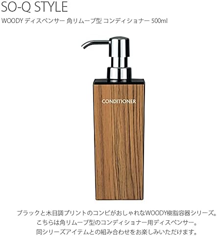 SO-Q STYLE 日本製 ディスペンサー WOODY(ウッデイ) 黒ウォルナット 角リムーブ型 大 コンディショナー 500ml 16-454619