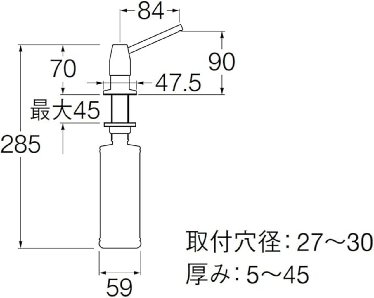 取付けサイズ:穴径27~30㎜、洗面台厚み5~45㎜