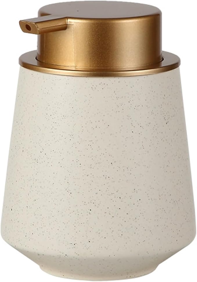 【セラミック製ソープボトル】良質のセラミックのボトル、プラスチック製より洗いやすく劣化しません。梨地の釉面工芸、北欧風のデザイン感です。マットな質感のポンプ、肌触りが心地よいし、水染みが残りません。