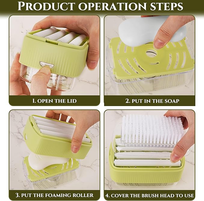 蓋を外し、石鹸をスプリングベースとスポンジローラーの間に置くだけで使用できます.多機能ソープボックスには4つの揉みローラーが付属しており、素早く簡単に泡を作ることができます.