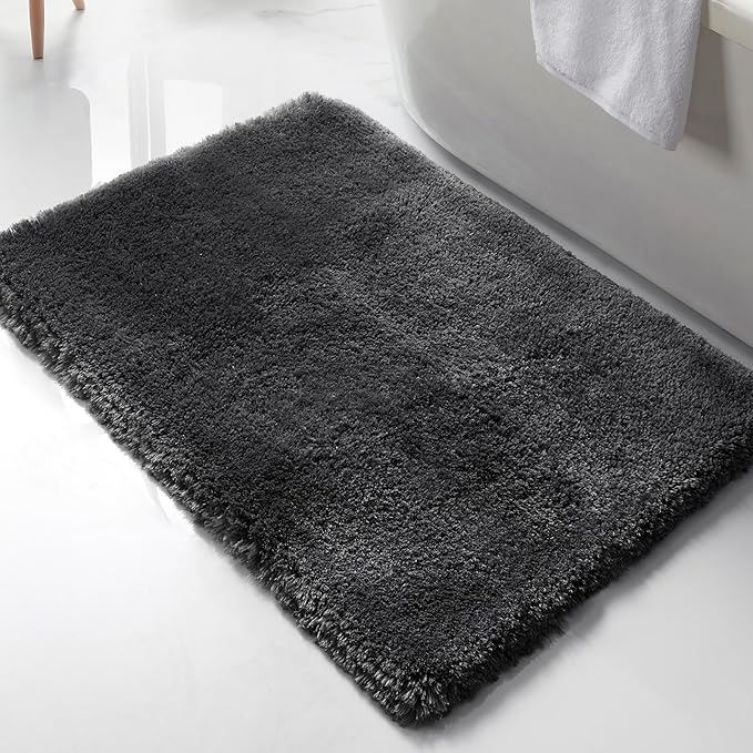 DIHACOZ バスマット 第二代 【超長毛足&超吸水】 速乾 柔らかい お風呂マット 洗える 滑り止め 40x60cm マイクロファイバー マット 足拭き 浴室 おしゃれ 洗面所 マット 抗菌 防臭 ダークグレー | KAZESHOP