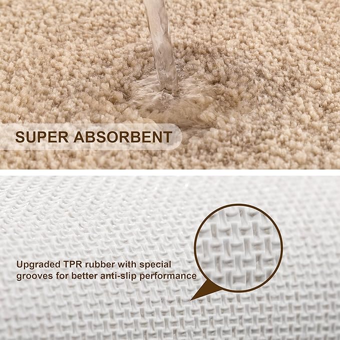 【滑らないバスマット】アップグレードされた無毒のTPRラバーバッキングが装備されており、耐久性が非常に高く長持ちする設計です。底の独特な溝はより安定する効果を生み、家族が滑ってしまうことを防ぎます。滑り止めの性能を最大限に引き出すためにも、バスマットの底を常に乾いた清潔な状態に保ってください。