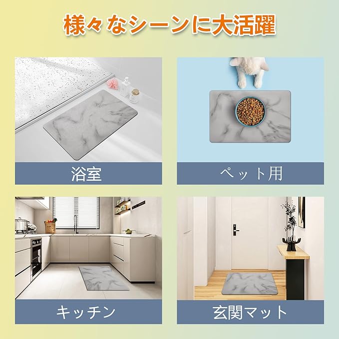 ★【様々なシーンに大活躍】浴室だけではなく、キッチンや洗面所、玄関などいろんな場所で活躍できる。 バスマット、水切りマット、玄関マット、浴室足ふきマット、ソファーマットなど、様々な使い道がございます。