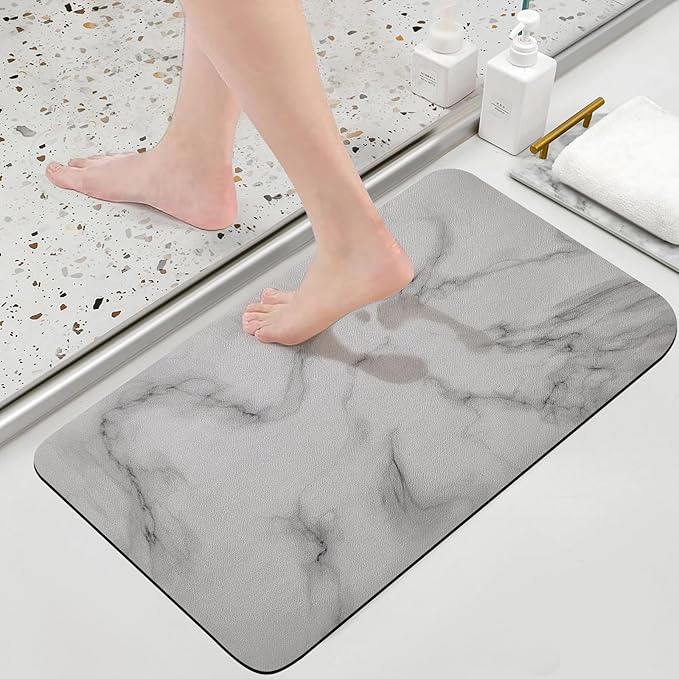 slefancy 珪藻土 バスマット 足拭きマット お風呂マット 速乾 洗える ソフト 吸水マット 滑り止め 浴室マット 珪藻土マット 脱衣所 洗面所 玄関マット キッチン 手入れ簡単 収納便利 (60*40*0.5cm, グレー大理石) | KAZESHOP