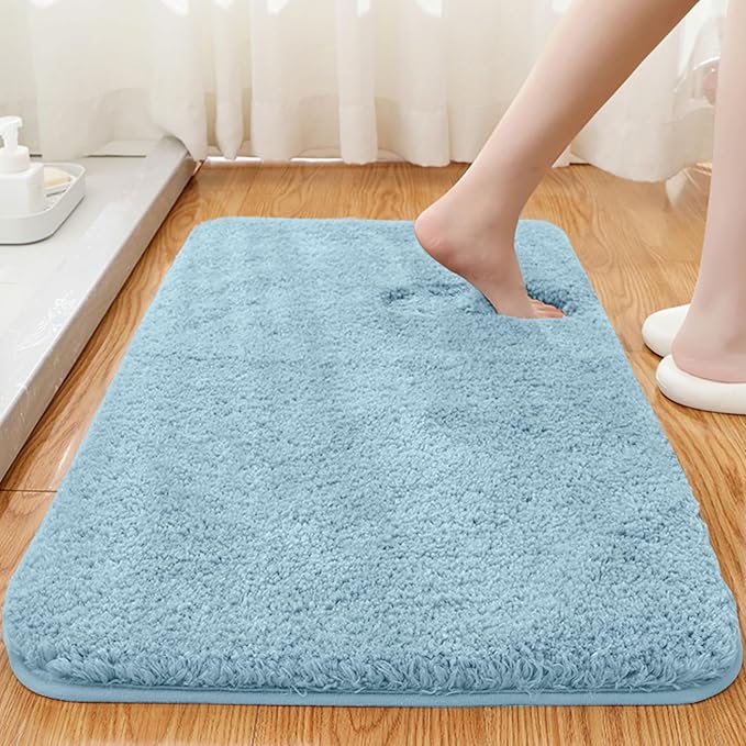 バスマット 速乾 吸水 お風呂マット 洗える 滑り止め 约50x80cm マイクロファイバー マット 足拭き 浴室 ソフトタッチ 丸洗い 洗濯 台所 脱衣場 キッチン 玄関やわらかマット (ブルー, 40*60cm) | KAZESHOP