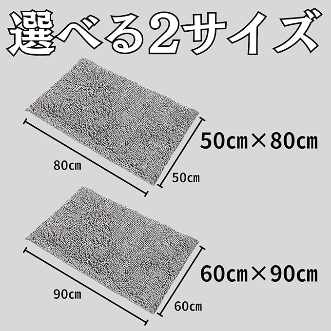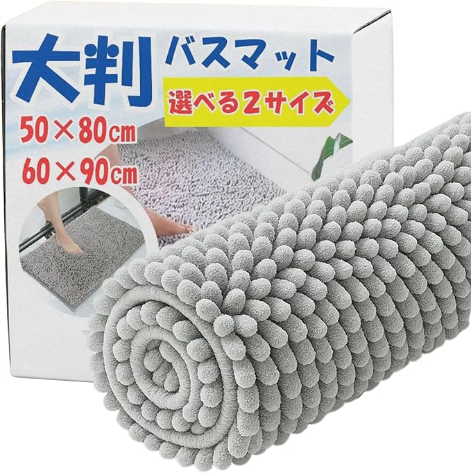 (バスマットの特徴)このバスマットは、驚異的な吸水力を持つマイクロファイバー素材を使用しています。お風呂上がりの水滴も一瞬で吸収し、冷たい感覚を残しません。さらに、抗菌処理が施されており、衛生面でも安心です。毎日の使用後も、洗濯可能なので常に清潔に保つことができます。また、60cm 90cmと大きなサイズで、広範囲の水をしっかりと吸収し、すべての水回りの悩みを解決します。