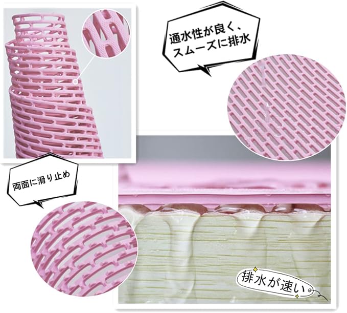 【高速排水設計】6 mmの排水穴を採用し、水切れに優れており、水たまりを防止します。使用後はシャワーヘッドで簡単に洗浄でき、自然乾燥が可能で、特別な乾燥工程を必要としません。これにより優れた抗菌・速乾性能を実現しています。