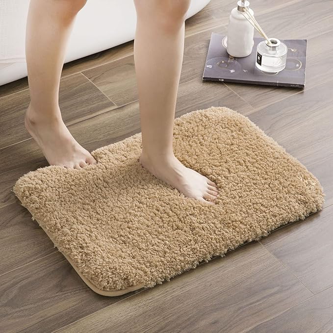 Phantoscope バスマット 速乾 お風呂マット 足拭きマット 吸水 滑り止め 丸洗い可能 抗菌 防臭 厚手 ふわふわ 風呂 浴室 台所 洗面台 玄関 ドア 赤ちゃん 8色展開 ベージュ S (約43 60CM) | KAZESHOP