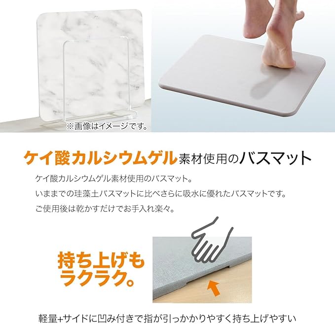 ケイ酸カルシウムゲル素材使用のバスマット。