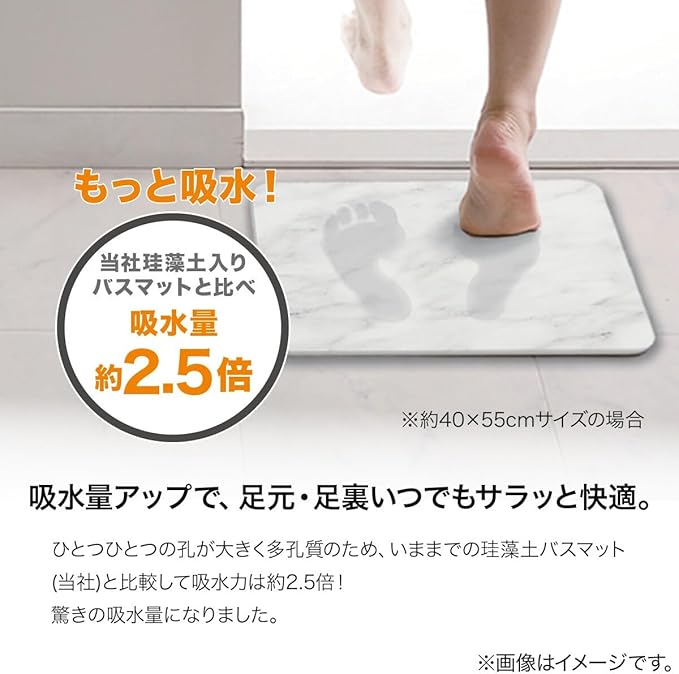 いままでの珪藻土バスマットに比べさらに吸水に優れたバスマットです。ご使用後は乾かすだけでお手入楽々。