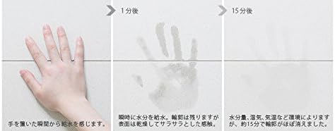 【備考】人間の皮脂や浴室の床の水の中に含まれる界面活性剤(シャンプーなどに含有)、単なる汚れで、珪藻土の多孔質の穴が目詰まりして吸水力が落ちます。バスマットの表面をサンドペーパーである程度こすり、新しい吸水面を出せば、吸水力は戻ります。