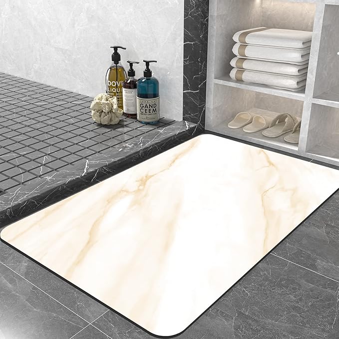 珪藻土 バスマット 足拭きマット 速乾 吸水 滑り止め ソフト 日本国内検査報告書 ノンアスベスト 80x50cm 珪藻土マット 洗濯可能 収納便利 大理石風 浴室 洗面所 風呂マット 抗菌 防臭 (ゴールド) | KAZESHOP