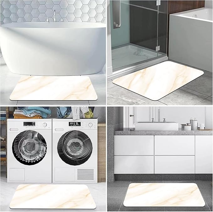 【2023 最新の珪藻土バスマット】進化した珪藻土バスマットは、従来の珪藻土バスマットに比べ、家族で使えるのが特徴、お風呂上りに、冷たくない柔らかなバスマットを踏んで足を拭くと、幸せな気分になり、体もリラックスして心地よくなります。柔らかい珪藻土のバスマットは、耐久性に優れ、壊れにくいのが特徴です。 新開発の珪藻土バスマットは、厚さわずか0.45cmでドアの開閉を妨げず、バスルームを美しく彩る実用的な装飾品のような役割を果たします。