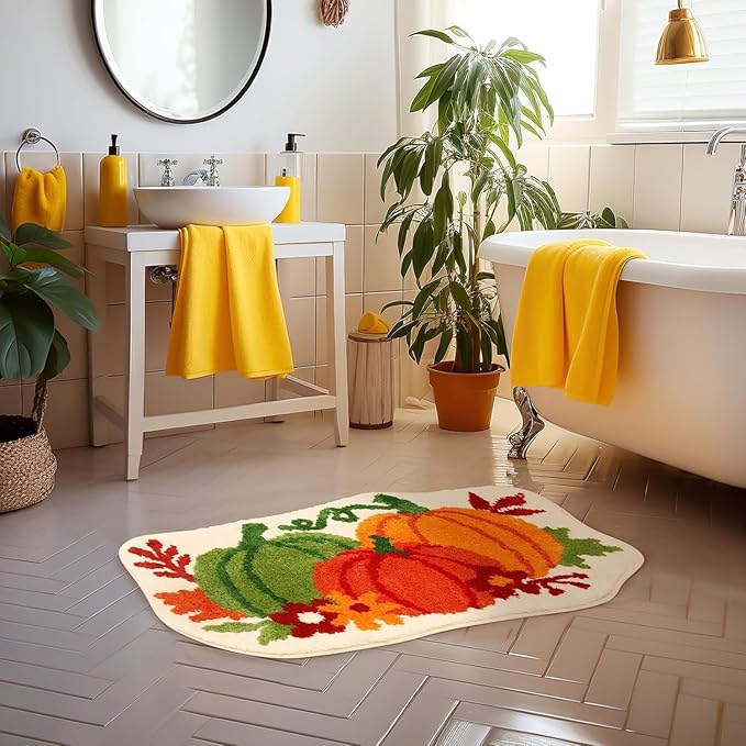 「雰囲気作り」カボチャデザインのバスマットは、キュートで素敵な外観で、祝日と季節の要素でいっぱいです。鮮やかな色合いと秋のモチーフがパーティーやイベントを一気に華やかな雰囲気に変えます。