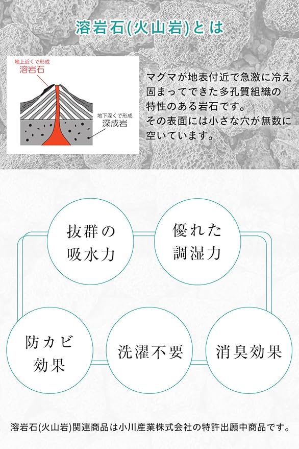 ✅バスマットは次の時代へ。Lava Lifeは次世代の素材”溶岩石(火山岩)”を使ったバスマットです。表面には小さな穴が無数空いており、水分の吸収や放出、消臭の機能に優れています。