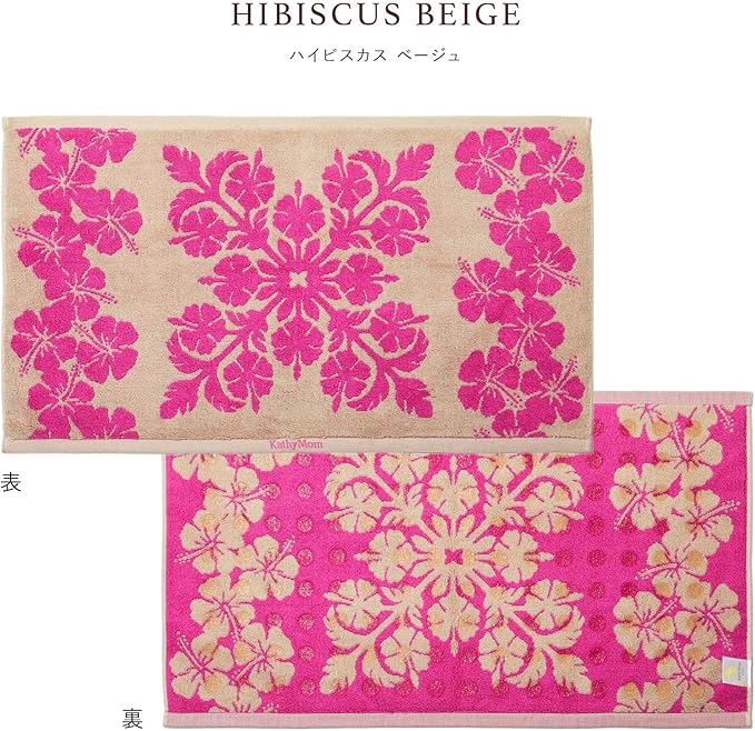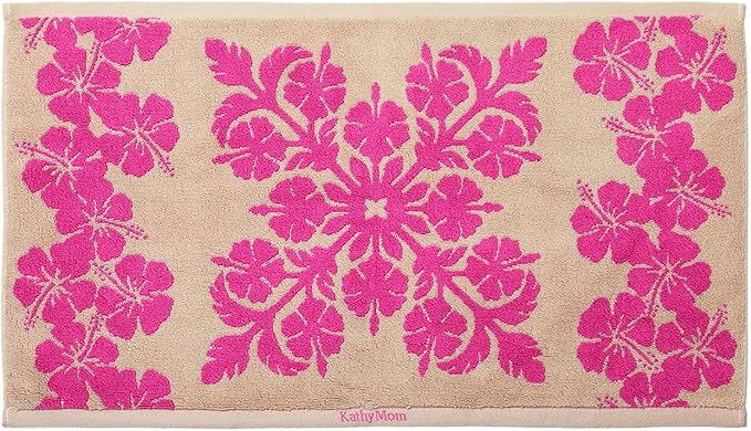 [キャシーマム アイランドスタイル] タオルバスマット ハワイアンキルト柄 ポノシリーズ 86103104 バスマット 女性 86103104F ベージュ:ハイビスカス 約横40cm 縦70cm | KAZESHOP