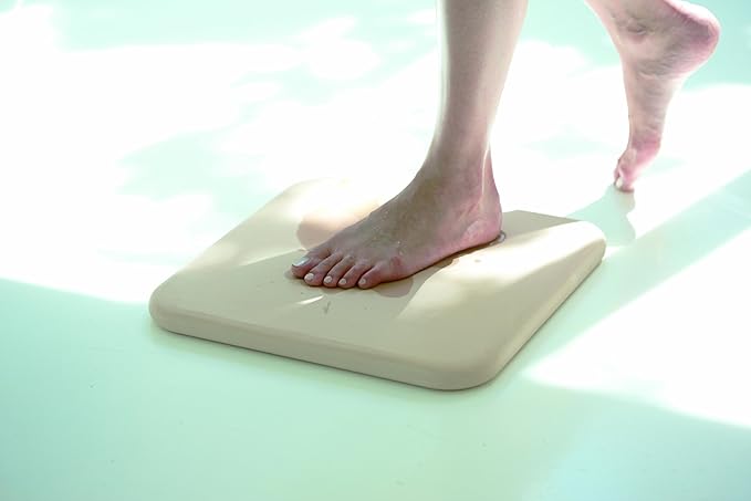 吸水性の高い自然素材、珪藻土(けいそうど)でつくられたバスマットです。