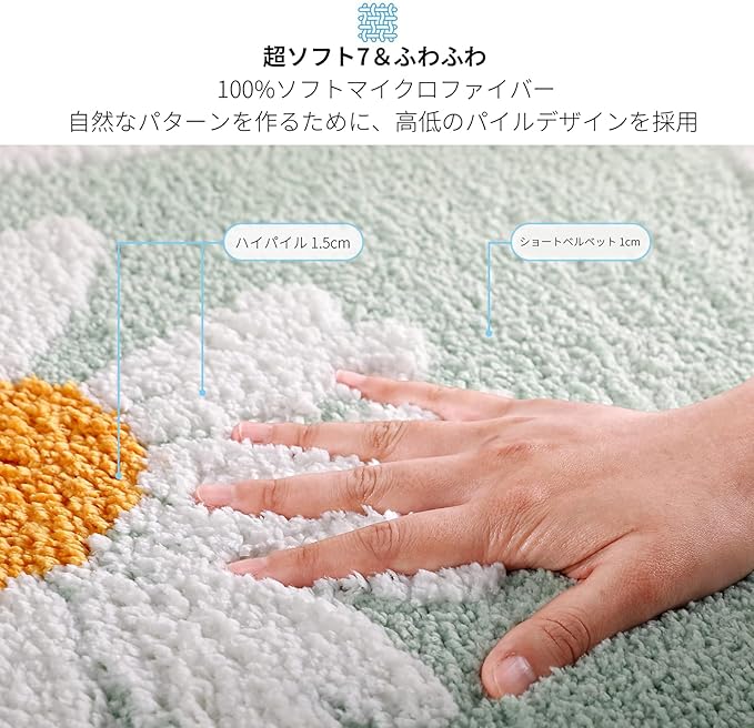 【高密度超細繊維】小菊バスマットは、表面に高密度の超細繊維を使用しており、優れた柔らかさと蓬松感を実現。約20mmのショートパイルが、最高の触り心地を提供します。