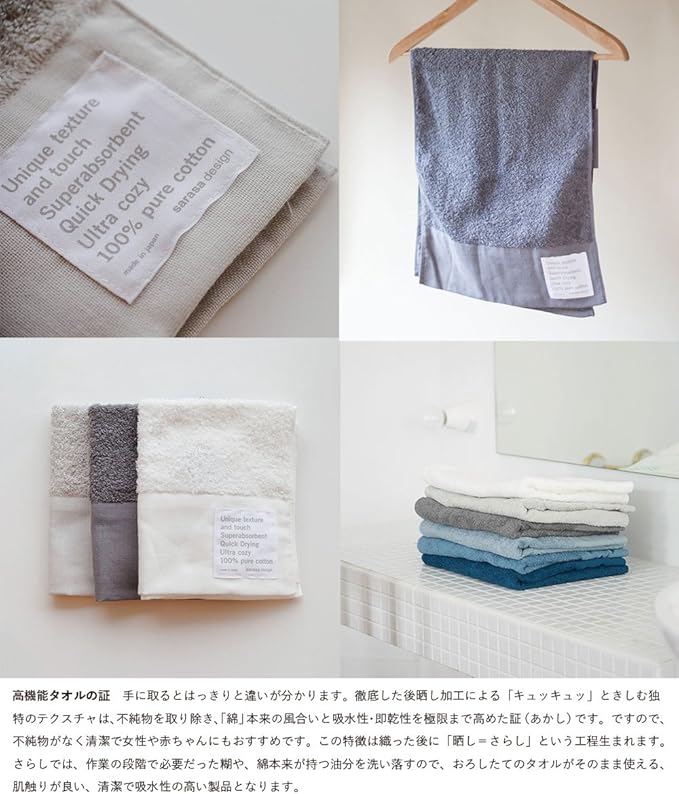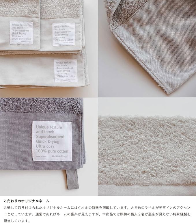 【注意】使用中パイル糸が引き抜けた場合すぐに引き抜けた糸をハサミで切ってください。タオルの特性を保つため、家庭用柔軟剤のご使用はお避け下さい。