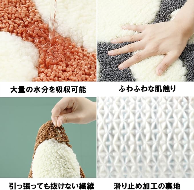✅【踏み心地よい】:超極細のマイクロファイバー素材を採用、頬ずりしたくなるようなふわふわな肌触りで、お風呂上がりの足元にも、玄関前にも使える嬉しいバスマットです。