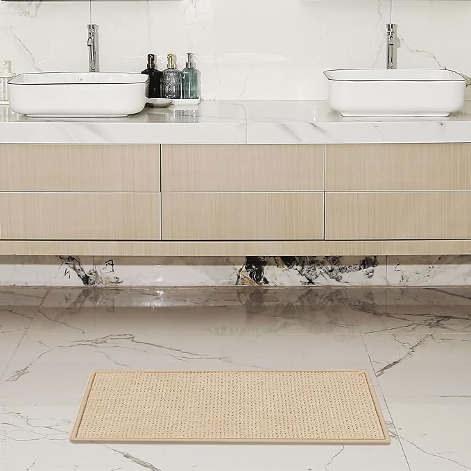 MOSISO バスマット シェニール バスルーム ラグ、16インチx24インチ(約40cmx60cm)、滑り止め プラッシュ シャギー バス カーペット、シャワー シンク 洗面台用、エクストラ ソフト 吸水性 ワッフル お風呂マット(ベージュ) | KAZESHOP