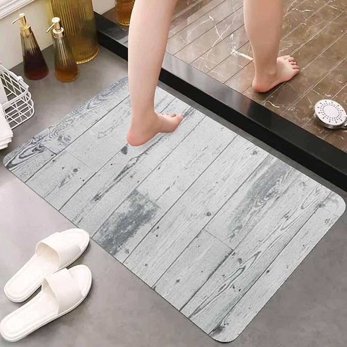 SAWABIYA バスマット お風呂マット 可愛い おしゃれ 足拭き ソフト 滑り止め 抗菌 浴室 吸水 速乾 キッチン 洗面所 お風呂 吸水 柔らかい 洗える 収納便利 (木目調) | KAZESHOP