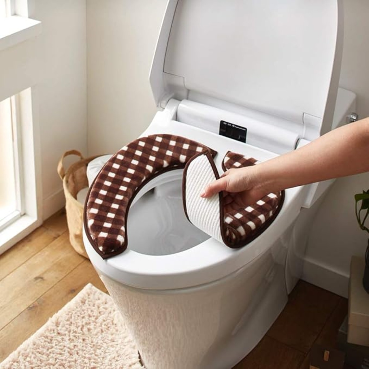 ピタッと便座に乗せるだけ、トイレがソファに早がわり!ソフトな肌触りのマイクロファイバー製です。