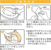 【ご使用方法】1)便座のホコリや水気、汚れをよく拭きとってください。2)シート裏面に付いている透明フィルムをはがしてください。3)便座にシートをしっかり貼り付けてください。 O型・U型・洗浄暖房型のどの便座タイプでもご使用いただけます。