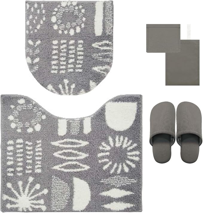 トイレマット、吸着型フタカバー、スリッパ、ペーパーホルダーカバーの4点セットです。