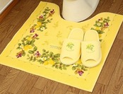 ●洗浄暖房型・普通型共用ふたカバー、スリッパの2点セット。 ●丸洗いができるのでいつも清潔です。 ●ナチュラルなテイストを表現したトイレタリー。 ●トイレマットは日本製ならではのカーヴィング技法で、立体感を表現。 ●マットは日本製です。 ※オカ プロヴァンス イエロー