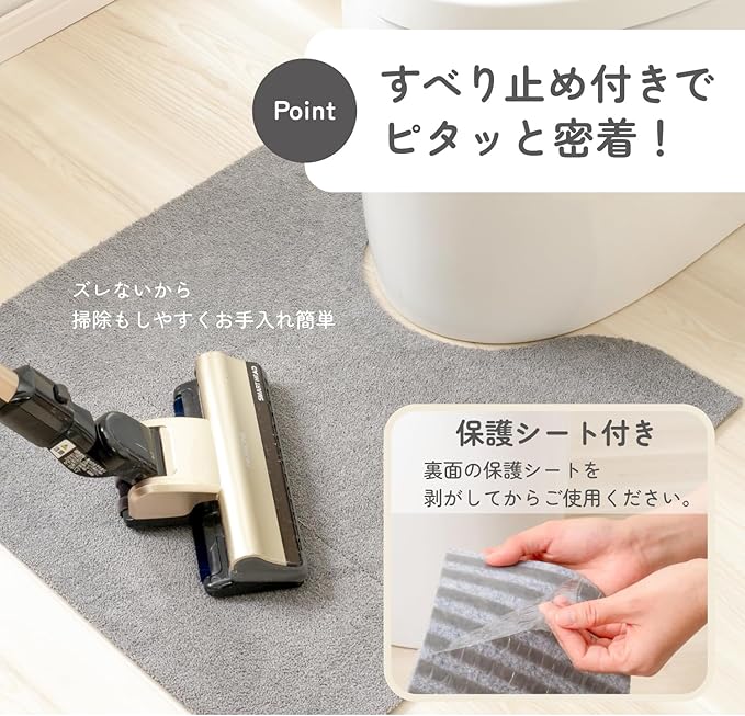 汚れた部分だけお洗濯。お手入れ簡単トイレ用カーペット。裏面は特殊スベリ止め可能でズレにくく、スベリにくいので安心・安全。