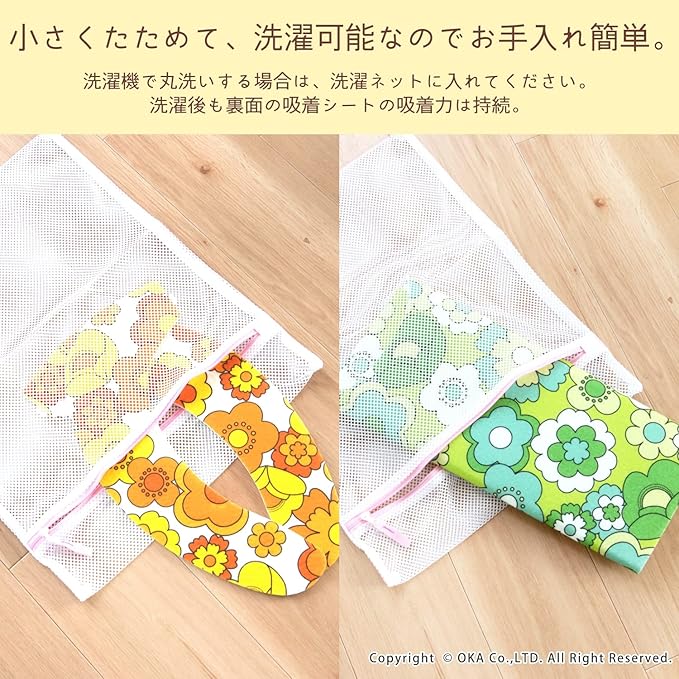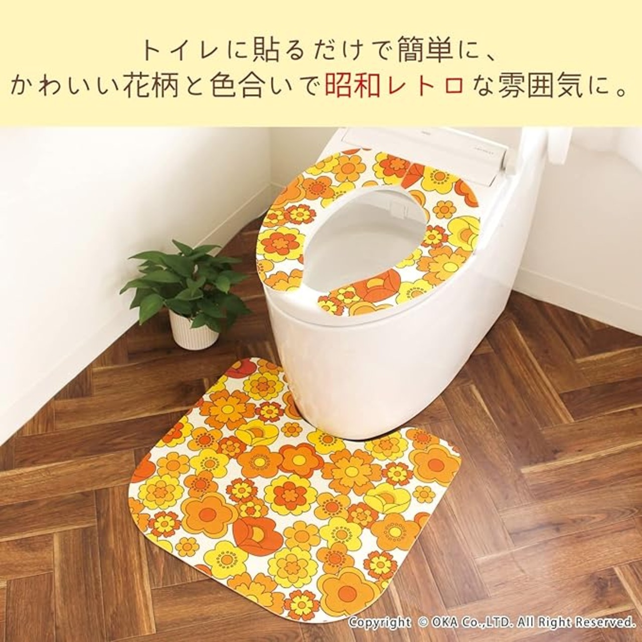 昭和レトロがおしゃれでかわいい「ルアンス」のシリーズにトイレシートと便座シートがセットになったトイレ2点セットが誕生。どこか懐かしいと感じるだけでなく、レトロ感が新鮮でおしゃれ好きな方にぴったり。トイレに貼るだけ、鮮やかな色合いとポップな花柄が簡単にトイレの空間を昭和レトロな雰囲気に彩ってくれます。トイレシート・便座シート共に裏面が貼って剥がせる吸着シートで、ピタっと張り付きズレにくいのが特徴です。小さくたためて、洗濯ネットに入れて丸洗い可能なのでお手入れが簡単でいつでも清潔に。洗濯後も裏面の吸着シートの吸着力は持続します。ハサミでカットできて、自宅のトイレにピッタリ合ったサイズに、お好きな形にアレンジしてお使いいただけます。