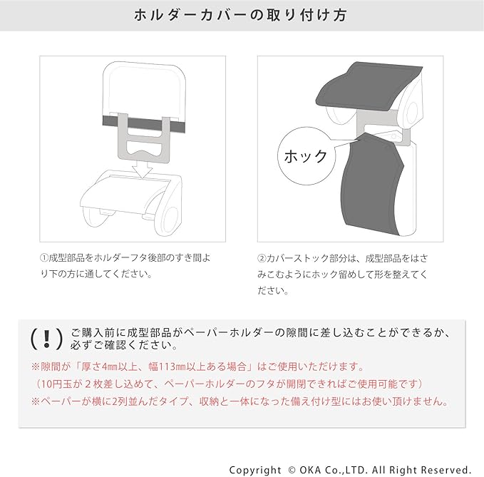 不適合:ペーパーが横に2列並んたタイプ、収納が一体になった備え付け型にはお使いいただけません。