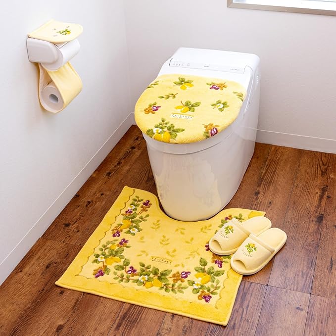 オカ(OKA) プロヴァンスシエル レギュラーサイズ トイレマット 4点セット (トイレマット +フタカバー+ホルダーカーバー+スリッパ) イエロー (4点セット 北欧 洗える 滑り止め 洗浄 暖房 O型 U型) | KAZESHOP